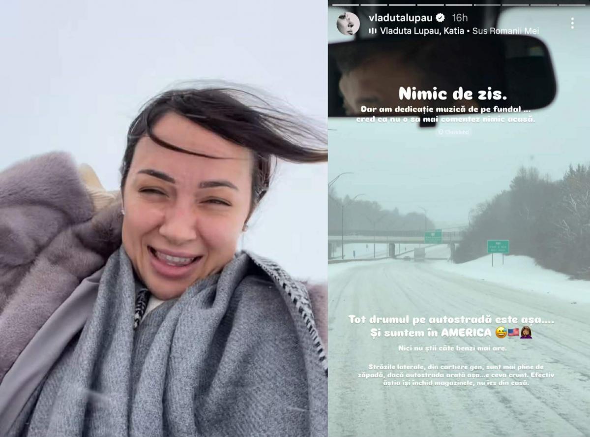 „Nimic de zis, dar am dedicație muzica de pe fundal (n.r. Vlăduța Lupău - Sus Românii Mei). Cred că nu o să mai comentez nimic acasă. Tot drumul pe autostradă este așa... și suntem în AMERICA. Nici nu știi câte benzi mai are. Străzile laterale, din cartiere, sunt pline de zăpadă. Dacă autostrada arată așa... e ceva crunt. Efectiv își închid magazinele, nu ies din casă”, a povestit artista pe Instagram.