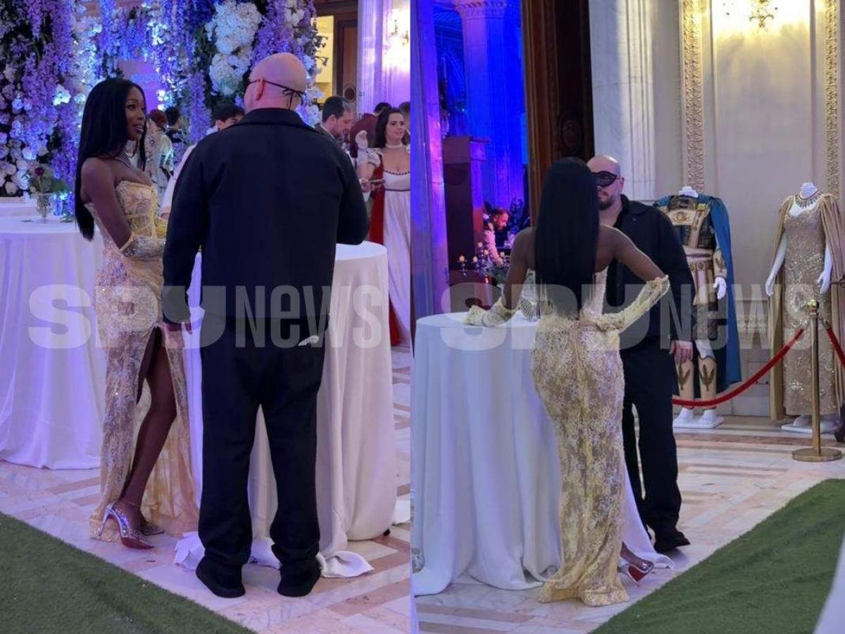 În timp ce Naomi strălucea într-o ținută provocatoare, Matei Dima a optat pentru un look all black, completat de o mască neagră, perfect integrată în estetica evenimentului.