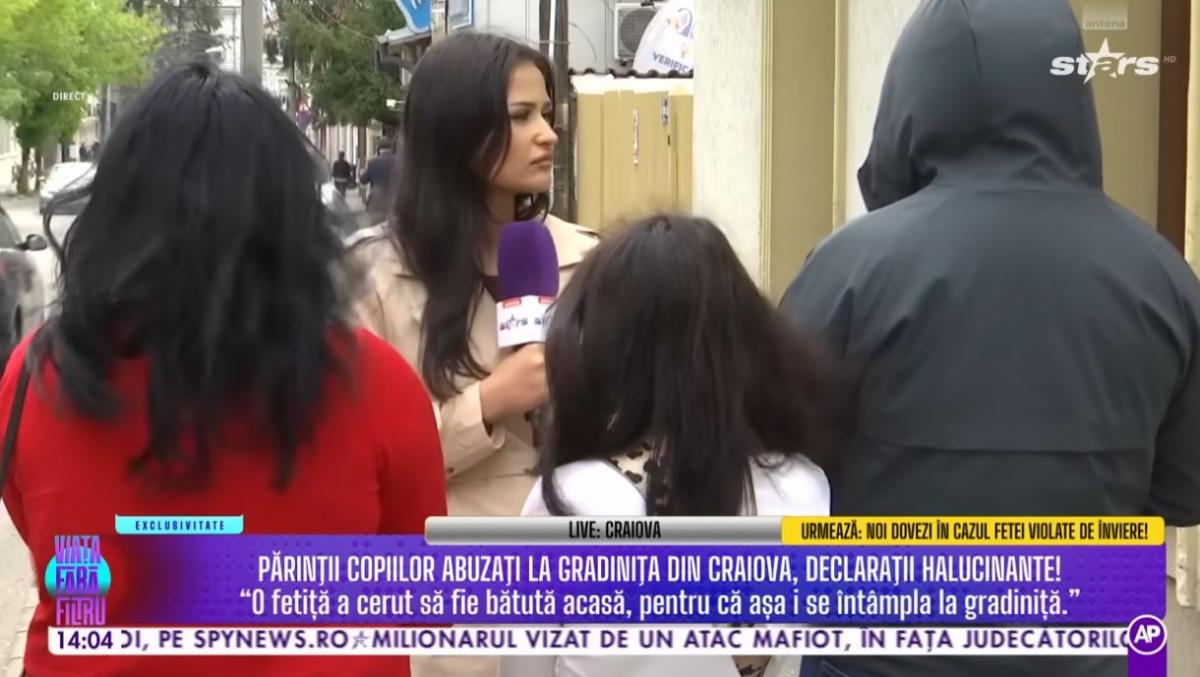 „De pe 16 noiembrie nu am mai dus-o. Când mergeam să o iau acasă, zicea că vrea să se mai joace, că nu se juca deloc și nu înțelegeam ce se întâmplă. A spus că doamna o bate. Am întrebat-o pe doamna educatoare ce se întâmplă; a spus că nu e adevărat, că acolo nu se întâmplă așa ceva, iar în ziua aceea a bătut-o ca să nu-mi mai spună. Spunea: «Doamna nu-mi dă să mănânc, pentru că sunt un copil rău și copiii răi nu au voie să mănânce». O jignea că vine îmbrăcată urât, îi mai adresa și alte cuvinte pe care mi-e greu să le reproduc”, a declarat mama unei fetițe.